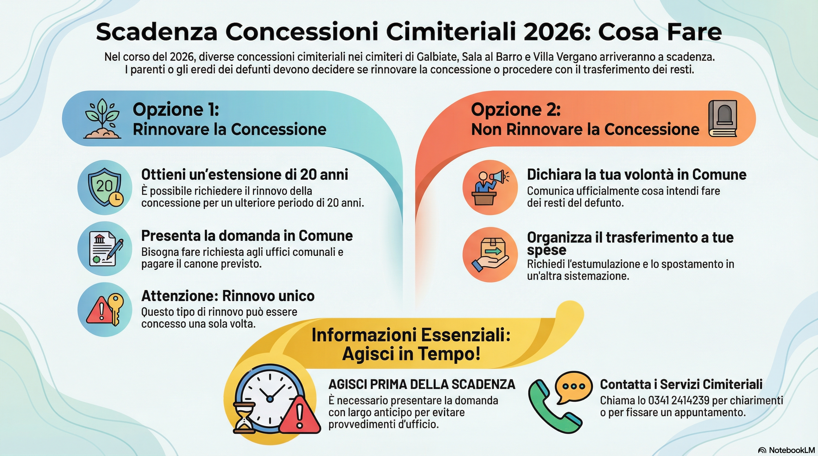 Si avvisa che risultano in scadenza aree e manufatti dei cimiteri del territorio.