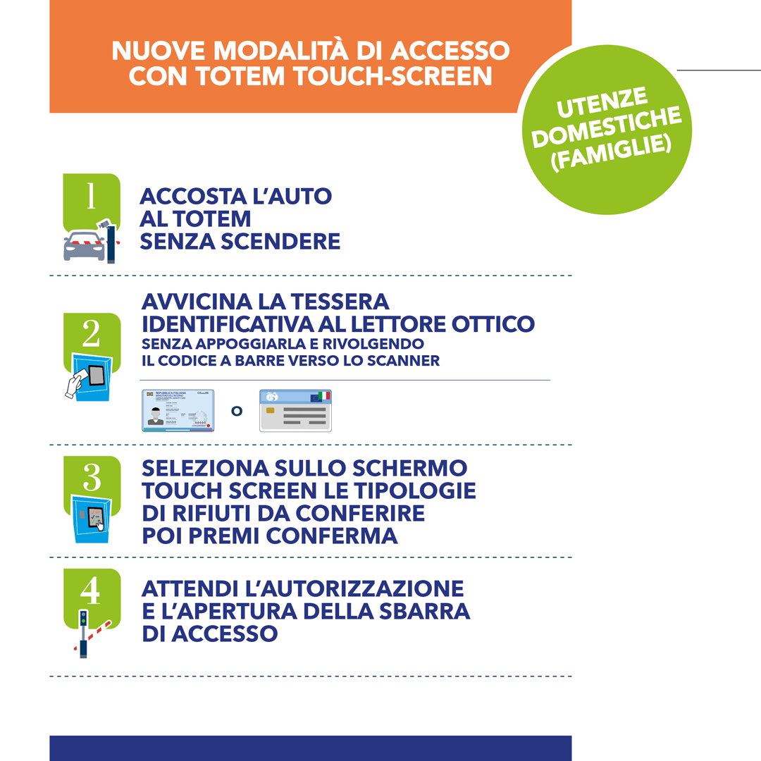 La novità più tangibile è rappresentata dai nuovi totem “touch screen” posizionati all’ingresso del centro per il riconoscimento delle utenze e la selezione delle tipologie di rifiuti da conferire.
