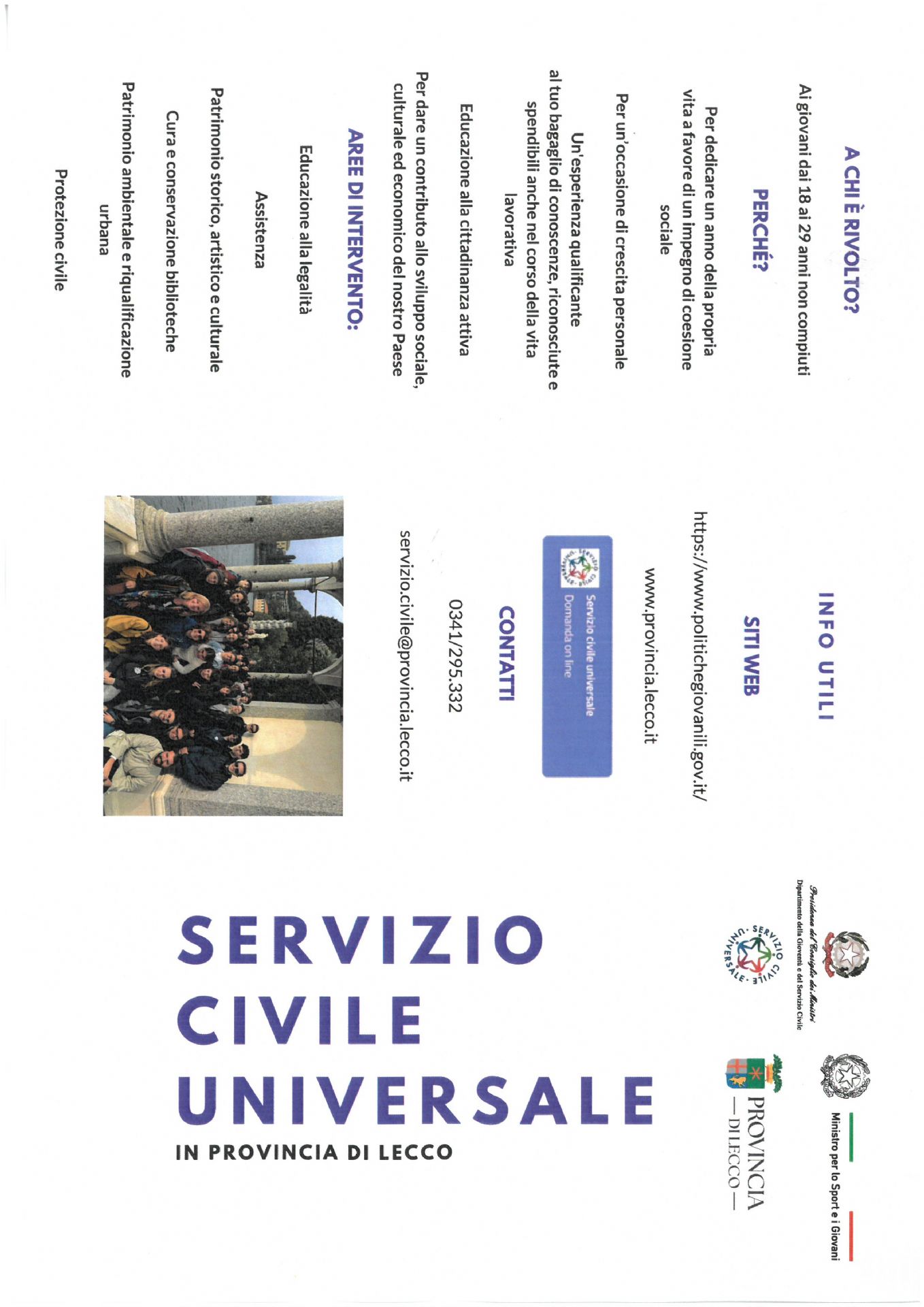 Servizio civile universale: la Provincia di Lecco seleziona 23 volontari