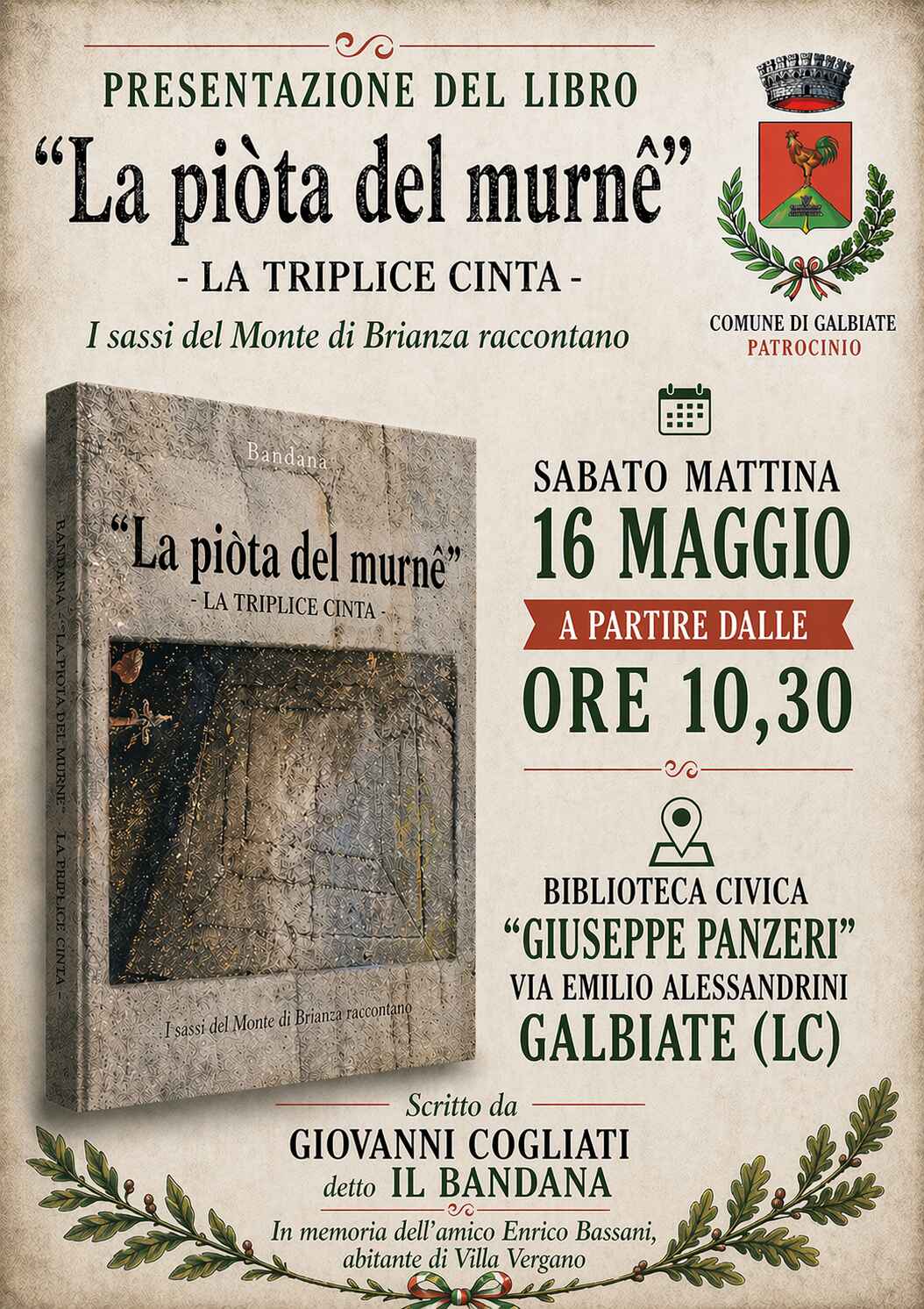 Giovanni Cogliati detto il Bandana presenta "La piòta del murne" in memoria dell'amico Enrico Bassani